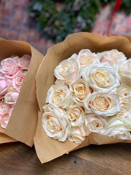 We aim to source the finest blush, large-headed roses, carefully wrapped and delivered to make someone smile.