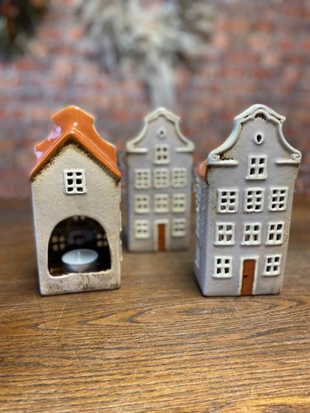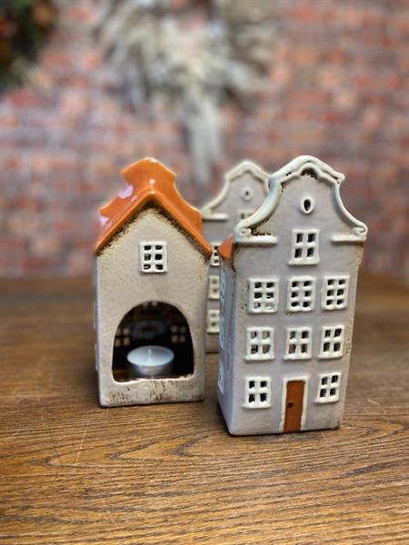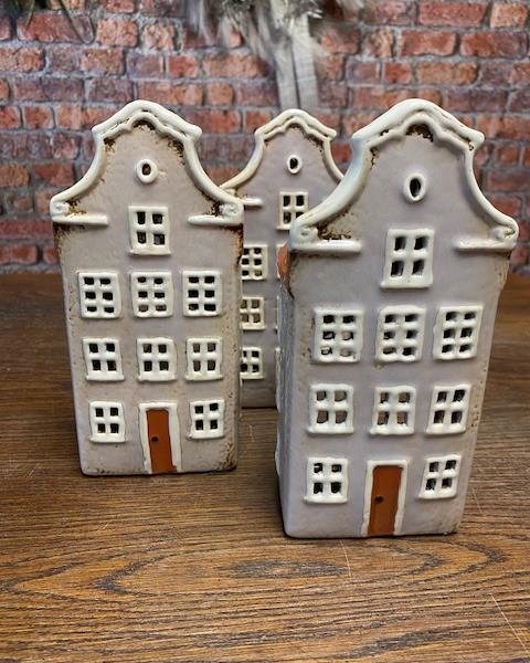 Beautifully handmade and delightfully quirky, this beige and amber ceramic house adds warmth and charm to any space. Standing approx 7.5inch tall, each piece is glazed by hand for a unique finish. Comes with a tea light - perfect for creating a soft, ambient glow on cosy evenings.