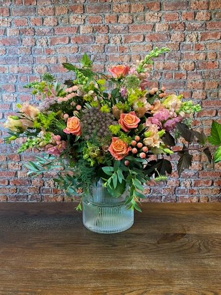 Petal Peach is a soft and romantic bouquet brimming with seasonal blooms in delicate peach, blush, and ivory tones. Featuring roses, lisianthus, and fluttery coral antirrhinums, this dreamy arrangement is perfect for celebrating love, joy, and gentle beauty — a timeless gift for anyone!