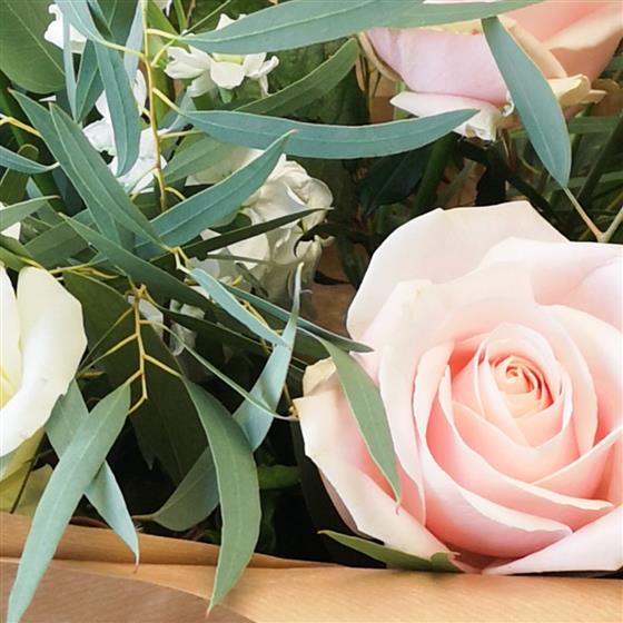 • This bouquet is stylishly gift wrapped in paper, finished with raffia and aqua packed in water to stay fresh.
